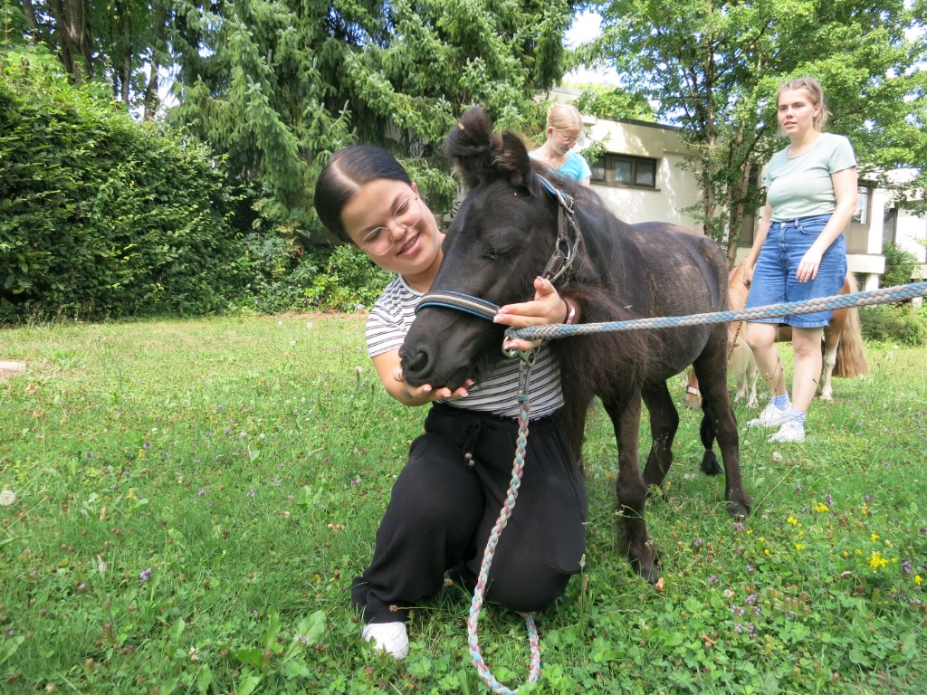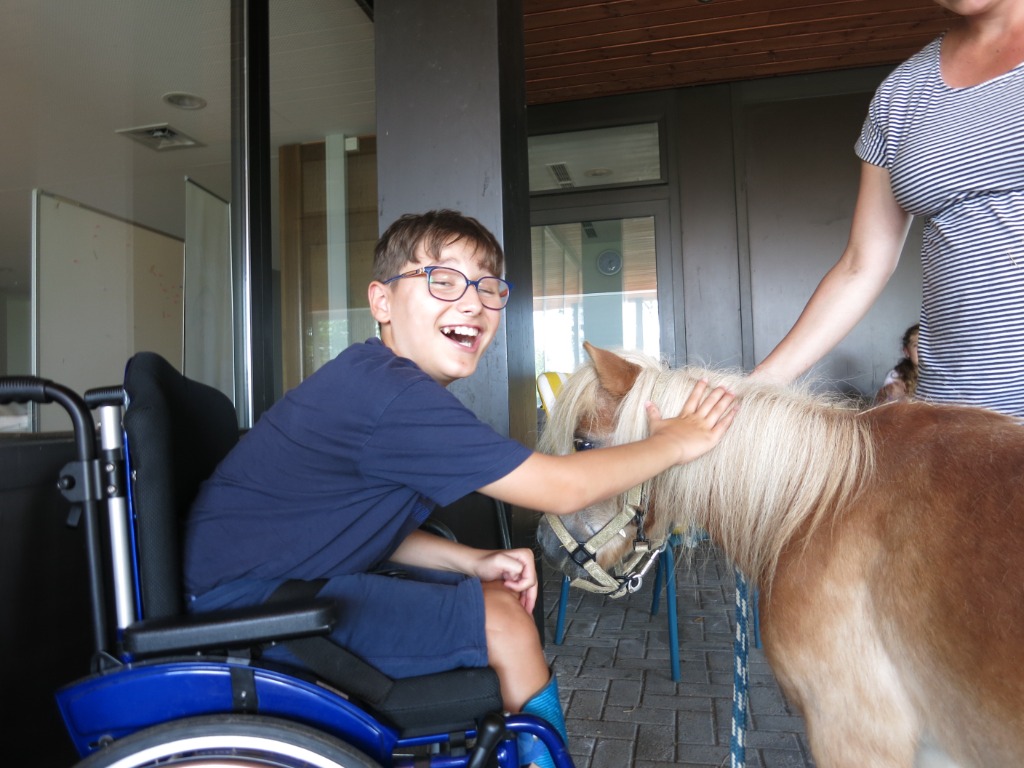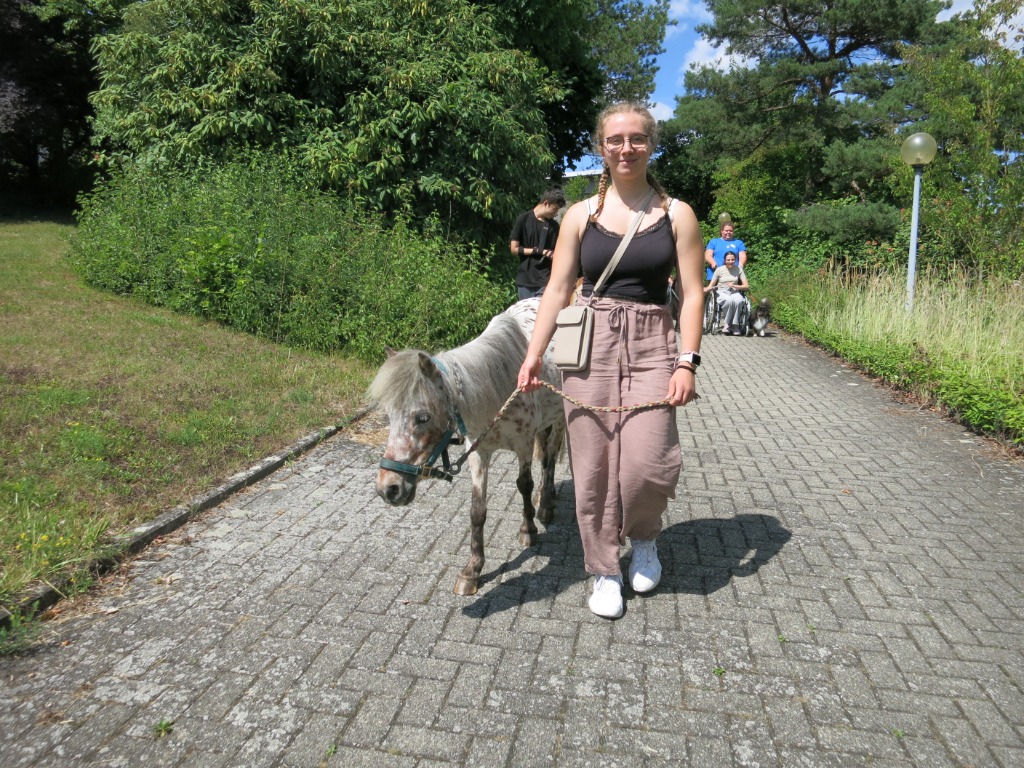 Der Sozialpädagogische Dienst bietet die tiergestützte Intervention für Kinder, Jugendliche und junge Erwachsene in der weiterführenden Rehabilitation auf der Station "B2 Reha" an. Bei diesem Angebot wird eine Sheltie Hündin bei der individuellen Einzelförderung und bei pädagogischen Gruppenangeboten eingesetzt. Als charakterlich geeignete und bald zertifizierte Therapiebegleithündin übernimmt „Ally“ als Co-Therapeutin eine unterstützende und intensivierende Funktion in der sozialpädagogischen Arbeit während der Neurologischen Rehabilitation.
